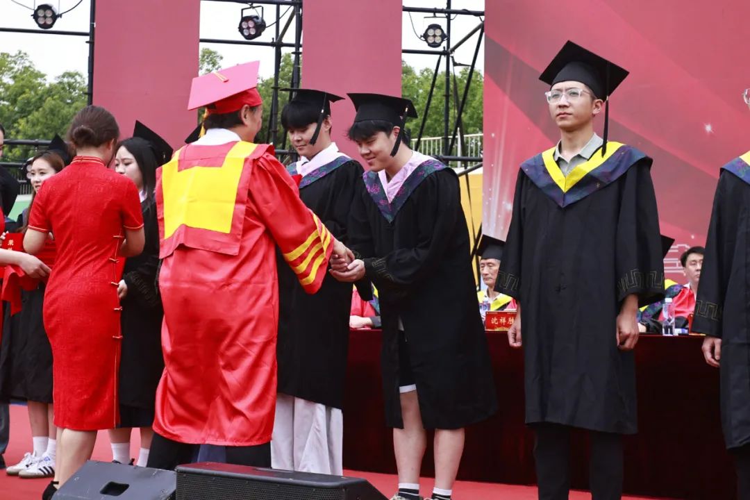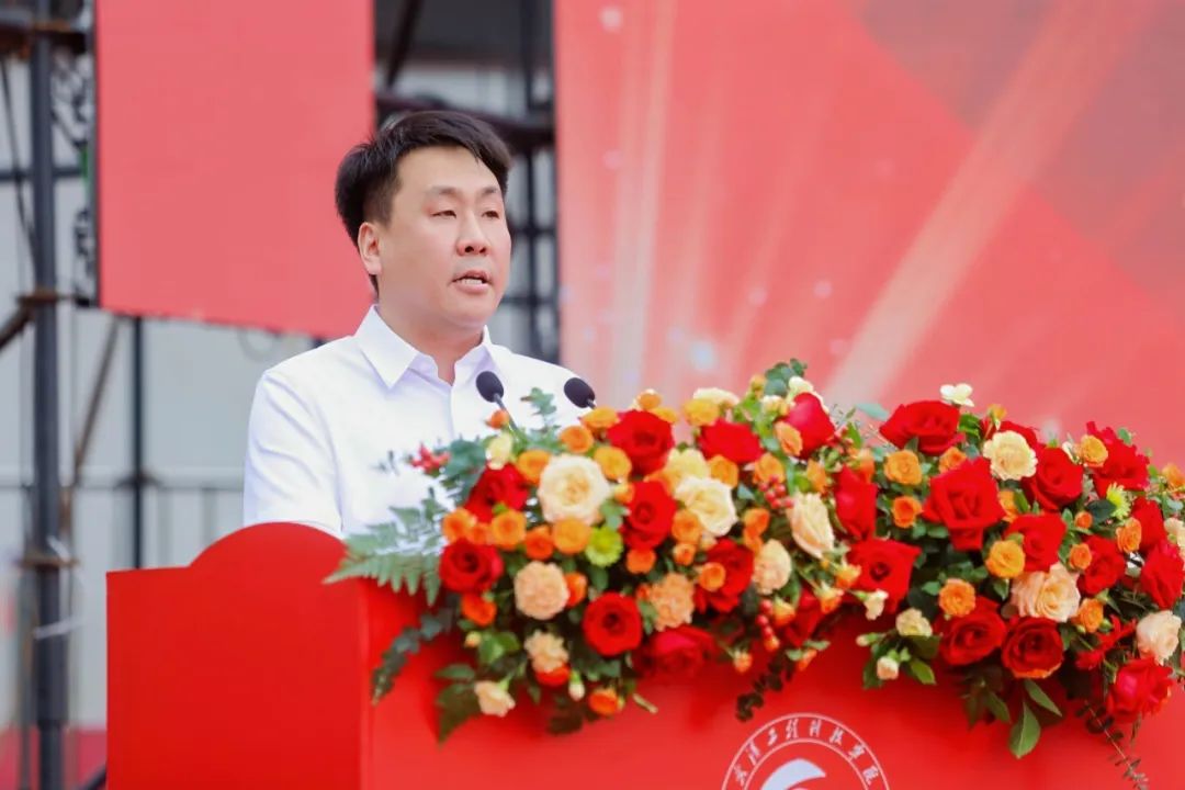 艺术与传媒学院21级环境设计专业刘心诺家长、山东鑫建检测技术有限公司党支部书记、董事长刘纪磊作为家长代表发言。他代表所有家长,向精心培育孩子们的学校与全体老师、领导致以最衷心的感谢与最崇高的敬意。他表示孩子们的成长和学校“高端化、全球化、个性化”的办学理念息息相关,为孩子提供了优秀的教育;国际化的办学特色,为孩子打开了更广阔的大门。他指出,毕业标志着人生新篇章的开启,毕业生们要牢记在武工院锻造的底色,扎实专业本领,做到精益求精,勇于创新,拥抱变化。他希望同学们心怀自信,勇敢启航;保持好奇,终身学习;脚踏实地,坚韧不拔。最后,他祝愿所有毕业生在世界舞台的广阔天地,绽放属于自己的耀眼光芒。