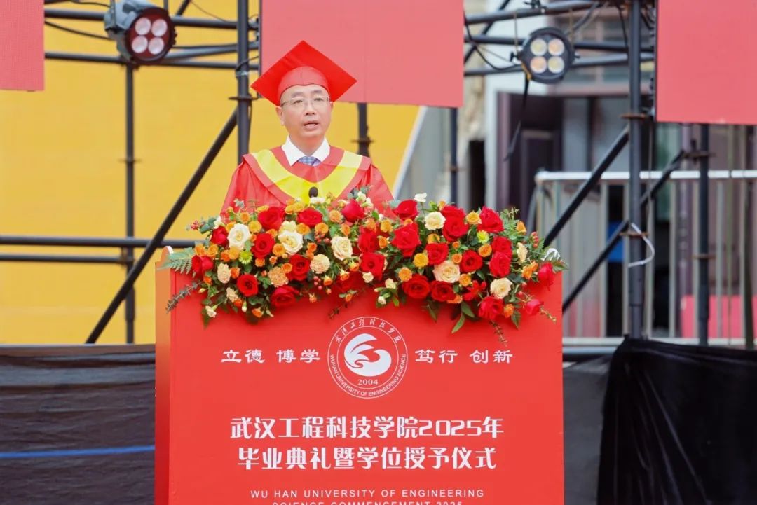 岁月匆匆,蝉鸣渐盛,青春当歌,逐梦远行。6月15日上午,武汉工程科技学院2025年毕业典礼暨学位授予仪式在学校田径场举行。学校全体校领导出席毕业典礼,各职能处室负责人,各学院院长、党总支书记,教师代表、校友代表、家长代表、2025届毕业生代表参加典礼。典礼由学校党委书记张会利主持。