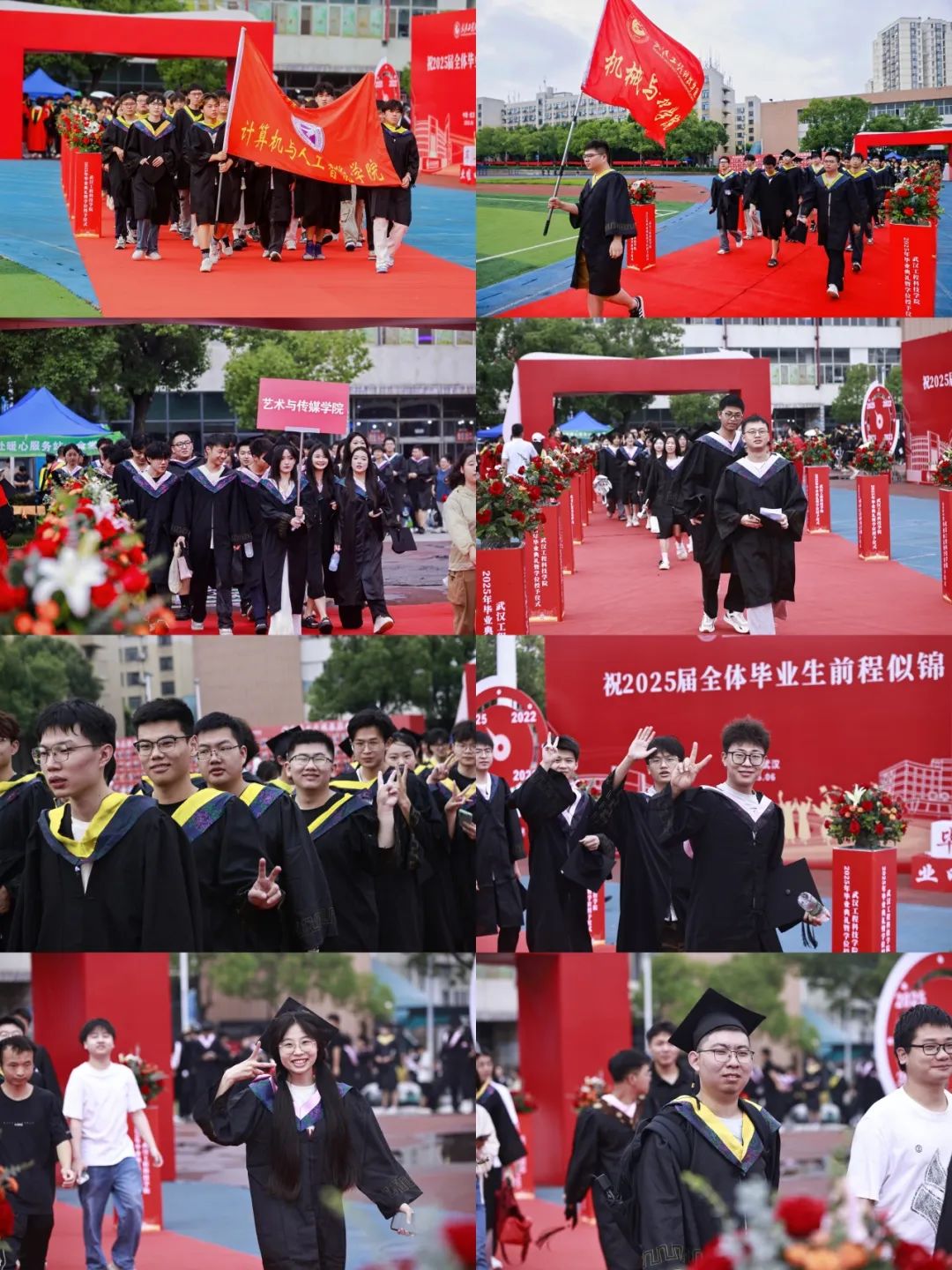 红毯铺展,师生有序入场,步履轻快笃定,愿毕业生驭风而上,逐光前行。