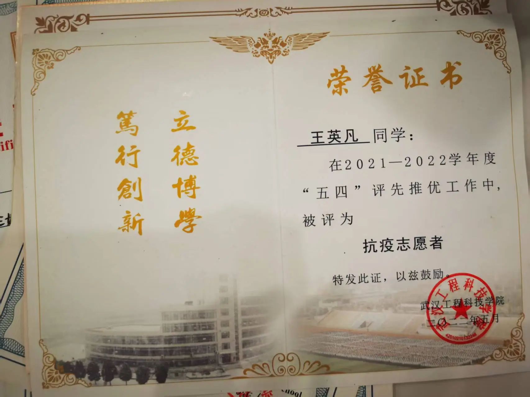 回顾大学生涯,王英凡的成长轨迹清晰而扎实。他积极参与各类校园活动,先后获得2021-2022年度五四优秀志愿者、2023-2024年度校三等奖学金、2025年优秀毕业生等荣誉,在实践中持续提升综合素质。疫情期间的志愿服务经历尤为珍贵,居家自学阶段,他主动响应社区招募,承担体温测量、抗原分发等工作。“这次经历不仅锻炼了抗压能力,更强化了责任意识,让我深刻体会到服务社会本身就是一种成长。”
