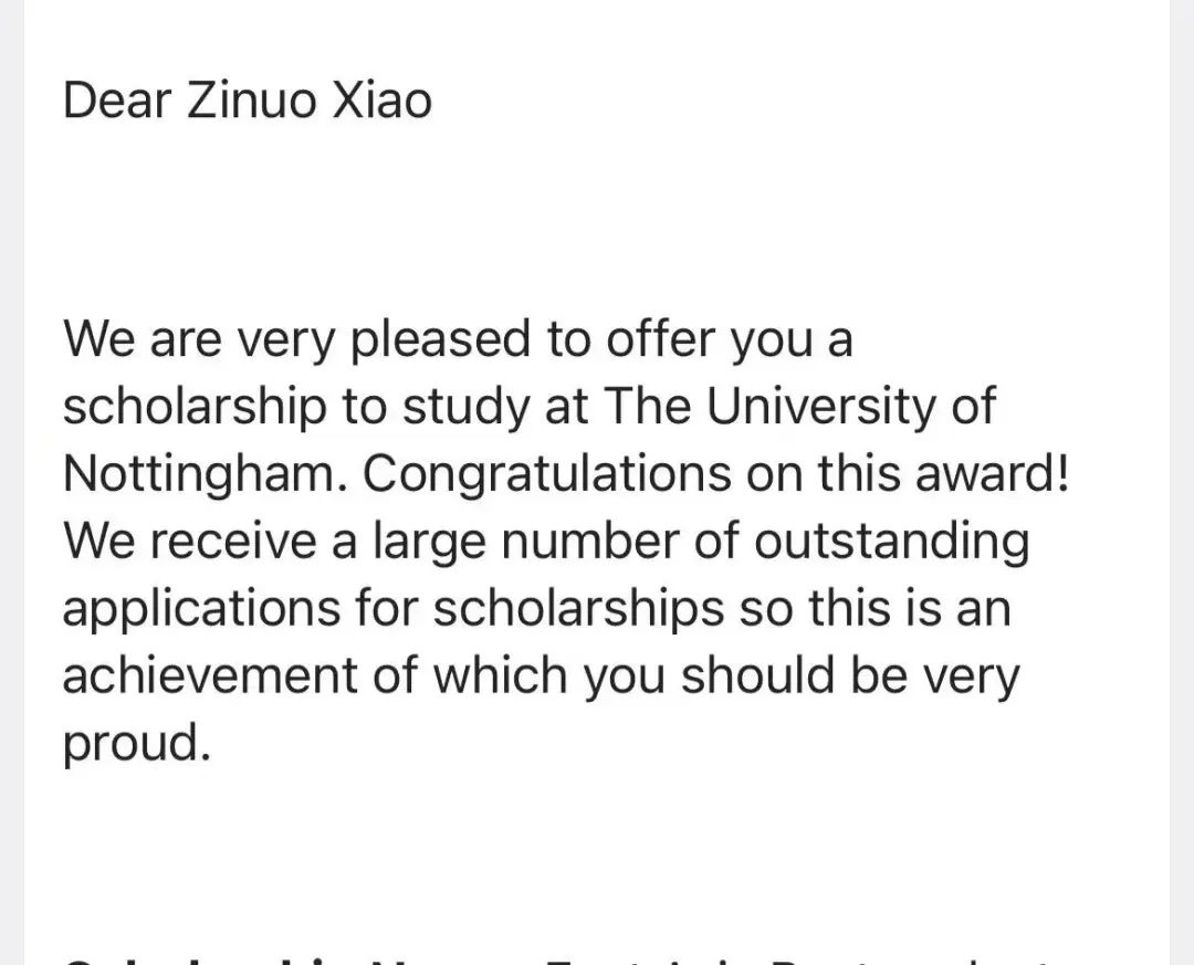(获得诺丁汉大学奖学金)